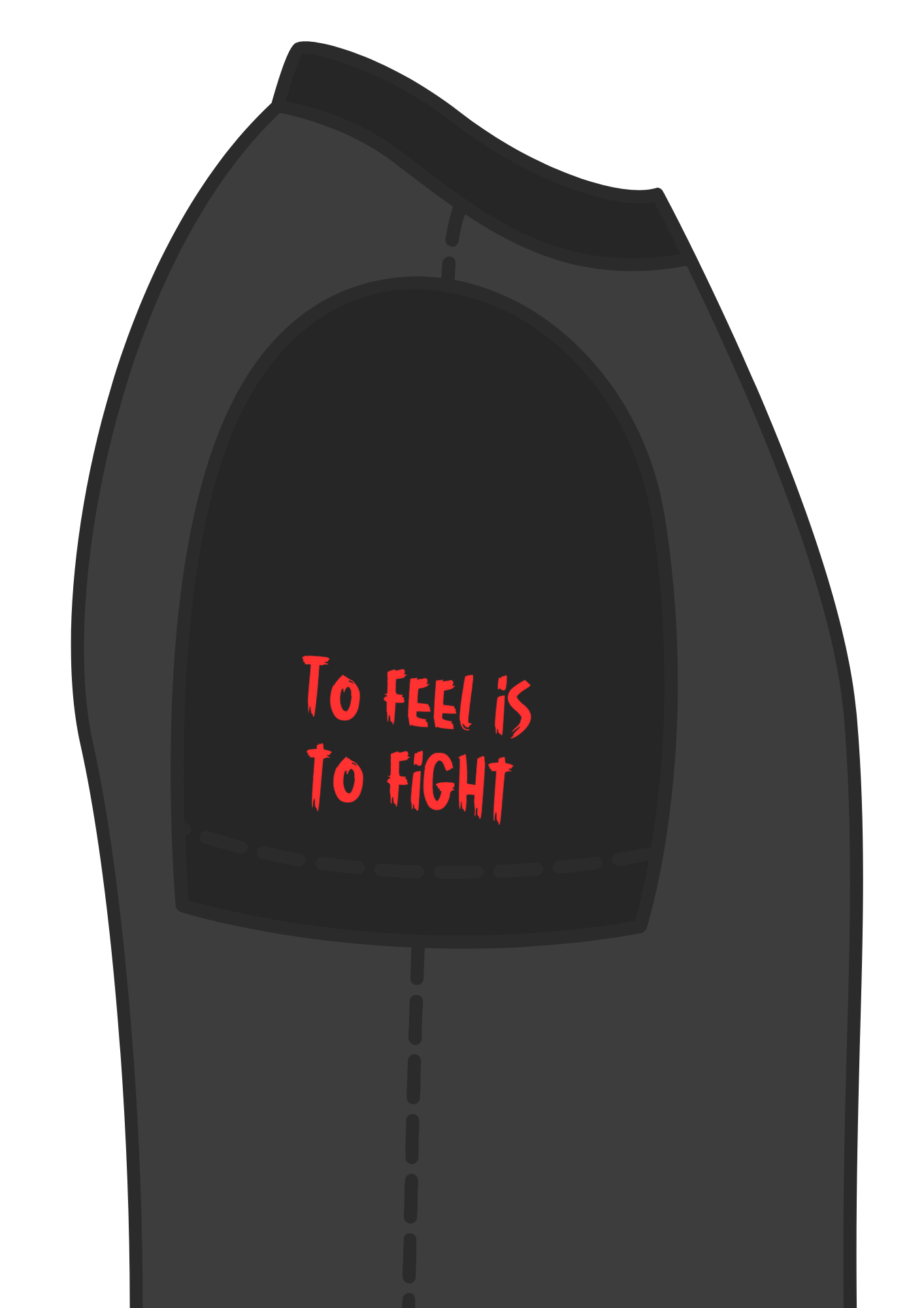 On the sleeve, To feel is to fight sharpens the point. It reframes emotion as action — reminding that empathy is not weakness, it’s courage sustained.